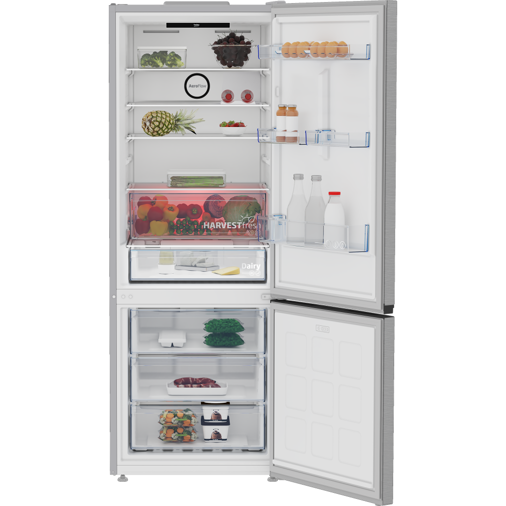 Le réfrigérateur combiné BEKO B300 Silver NoFrost avec ProSmart™ Inverter Compressor est un appareil moderne et efficace, conçu pour optimiser la gestion des aliments tout en offrant un design élégant. Voici une description détaillée de ses caractéristiques principales :