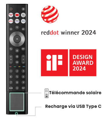 | Accès direct sur la télécommande | Netflix, Youtube, Prime Video, Rakuten TV, Canal +, Molotov, Disney + |